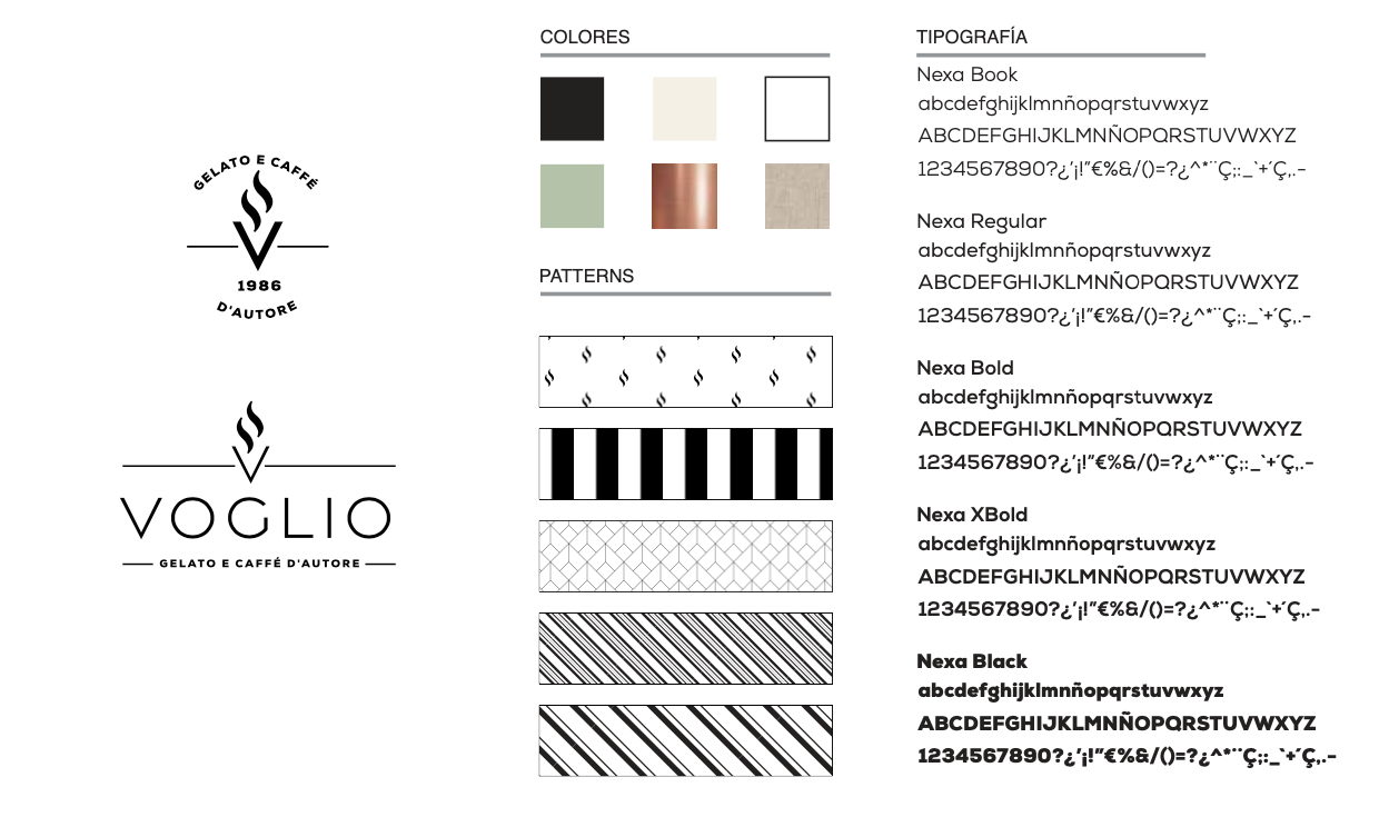 Diseño de marca, sistema gráfico, Retail y packaging para las heladerías Voglio.